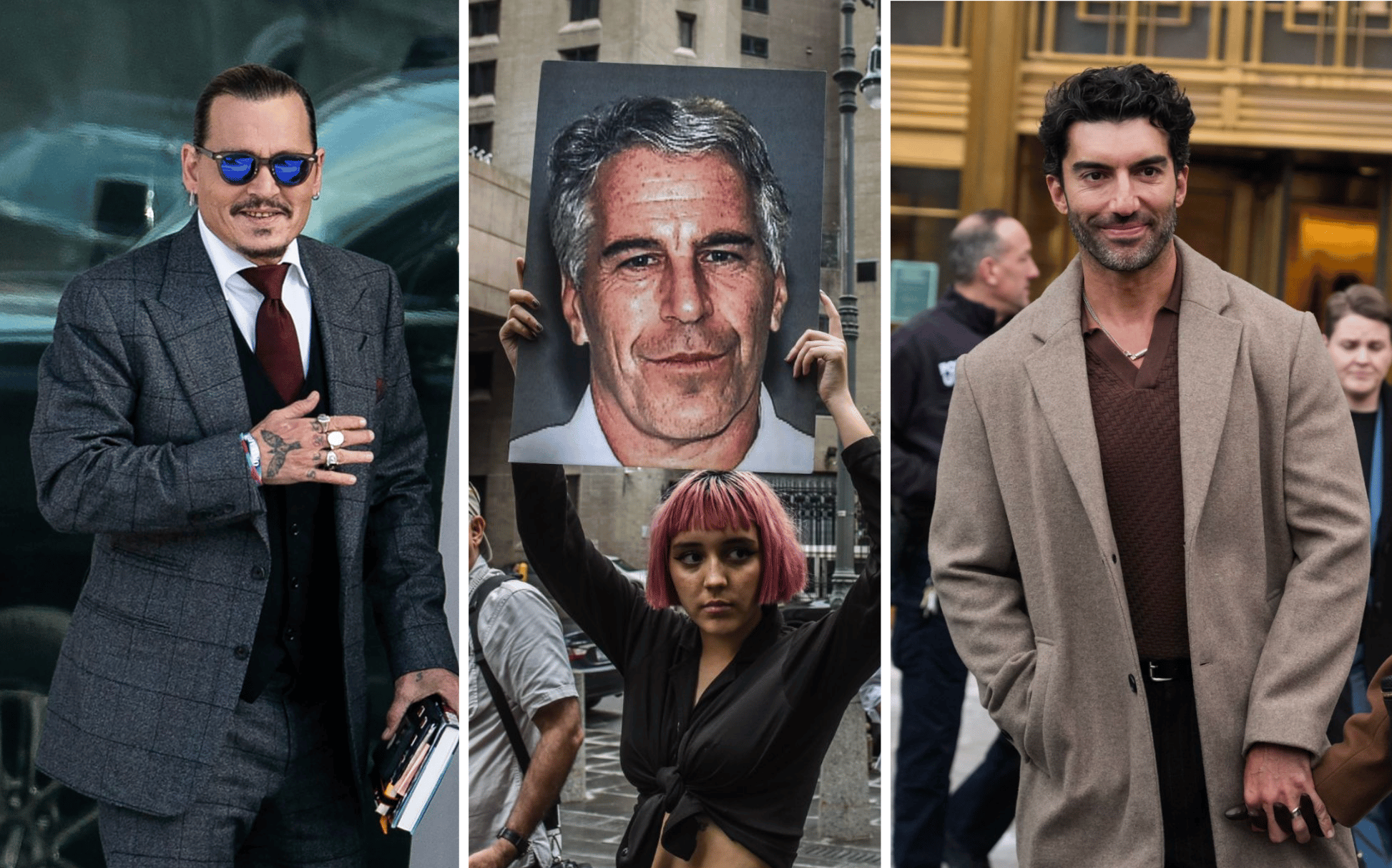 From L to R: Johnny Depp acknowledges his fans as he arrives outside court on April 28, 2022 in Fairfax, Virginia. (Photo by Sarah Silbiger/Consolidated News Pictures/Getty Images) A member of a protest group called "Hot Mess" holds up a sign of Jeffrey Epstein in front of the Metropolitan Correction Center on July 8, 2019 in New York City. (Photo by Stephanie Keith/Getty Images) Justin Baldoni arrives at court for continued settlement talks on February 12, 2026 in New York City. (Photo by John Nacion/Getty Images)